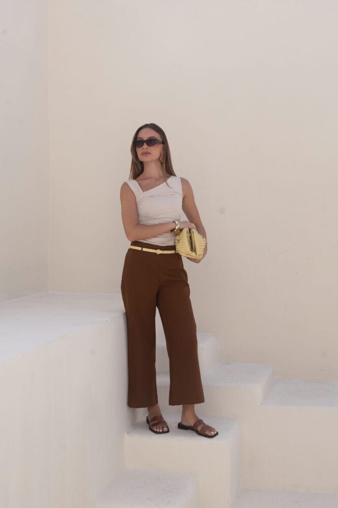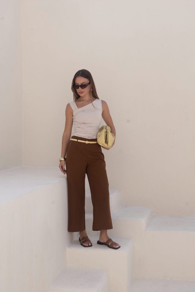 Confeccionada em malha de poliamida premium, a Blusa Fabiana se destaca pela alta durabilidade, toque macio e elasticidade ideal que valoriza a silhueta com conforto. O decote assimétrico é combinado com drapeados estrategicamente posicionados ao longo do corpo, criando um efeito elegante e feminino. A estrutura do tecido, junto com o bojo embutido, oferecem sustentação sem apertar. Versátil, pode ser usada tanto em produções casuais quanto mais elaboradas, sempre com um visual refinado.