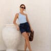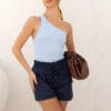 Blusa confeccionada em malha canelada de poliamida com elastano, que proporciona toque macio, alta elasticidade e ajuste perfeito ao corpo. O design de um ombro só traz modernidade e sofisticação, enquanto a abertura nas costas, assimétrica e estratégica, adiciona um charme inesperado ao visual. Um dos grandes diferenciais da peça é sua funcionalidade dupla face: de um lado, o acabamento canelado; do outro, o liso, permitindo variações de uso e mais versatilidade no guarda-roupa.