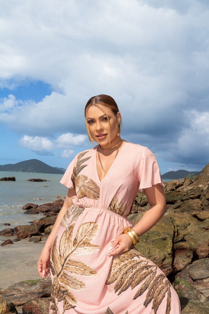 Ideal para composições casuais-chiques à beira-mar, almoços em dias ensolarados ou eventos ao ar livre, o vestido une estilo e conforto com personalidade.
